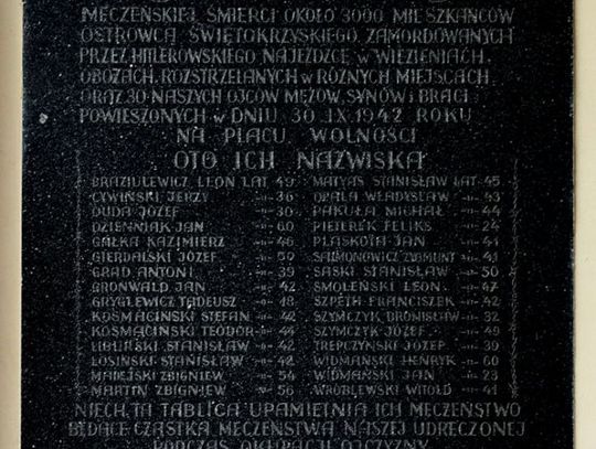 W maju 1944 r. specjalna ekipa niemiecka przystąpiła do usuwania śladów zbrodni. Rozkopała grób i żrącą substancją polała szczątki pomordowanych. W bestialski sposób zniszczyła ciała bohaterów, ale nie pamięć o nich. O ofiarach mordu przypomina tablica umieszczona przy wejściu głównym do kościoła św. Michała oraz pomniki na ostrowieckim Rynku i cmentarzu przy ul. Denkowskiej.