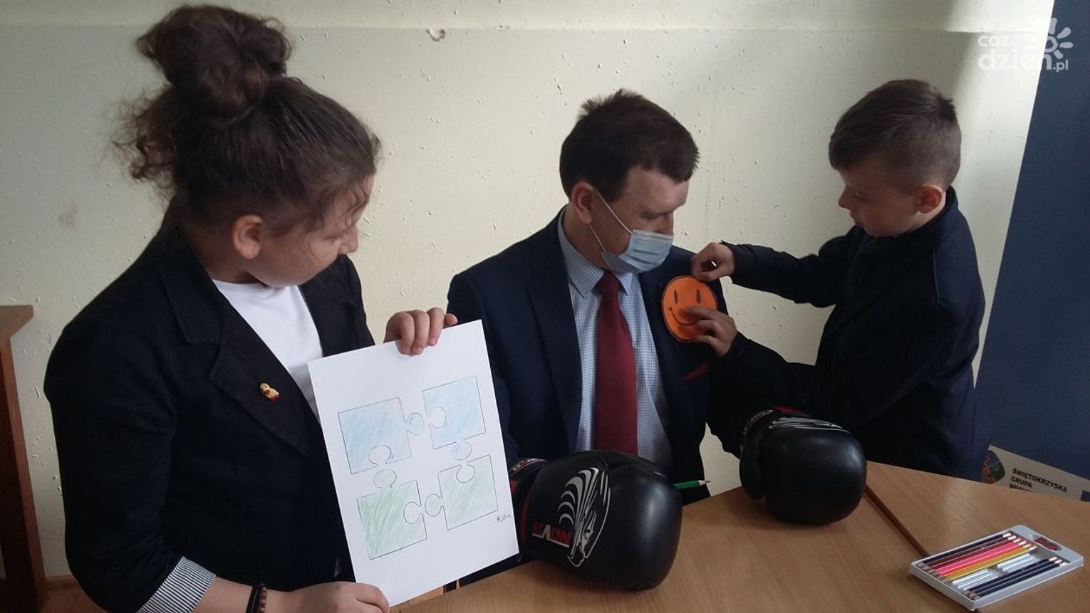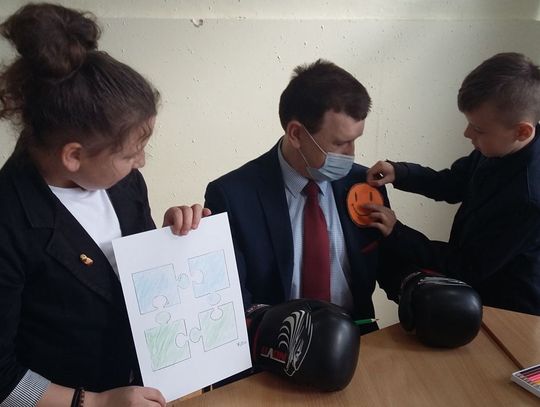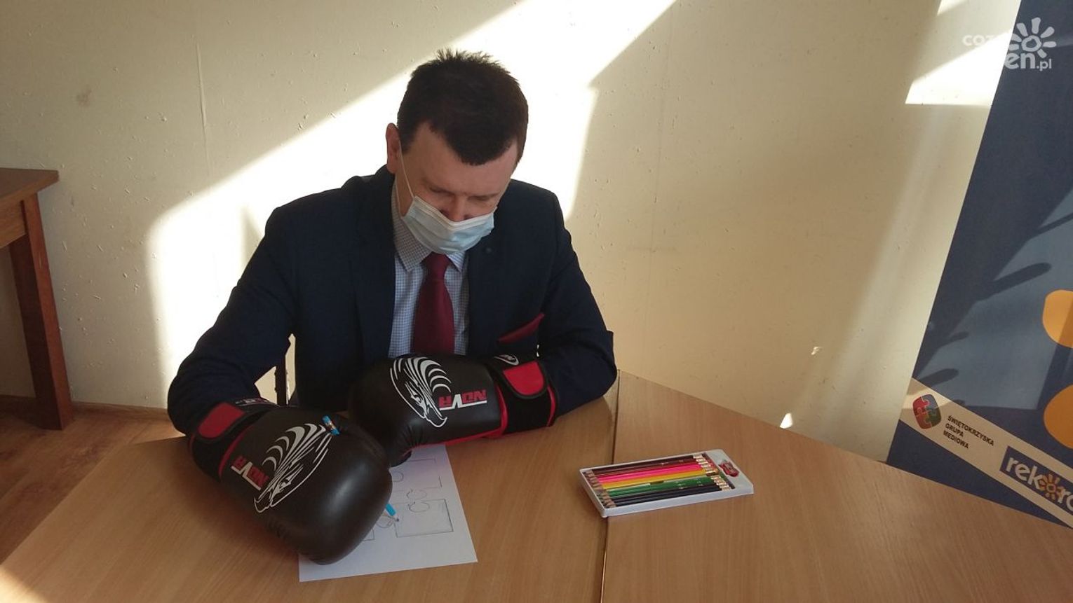 Miała temu służyć np. konkurencja, w której należało pokolorować rysunek za pomocą kredki trzymanej w rękawicy bokserskiej. Tego zadania podjął się prezydent Ostrowca Świętokrzyskiego, Jarosław Górczyński, na którym warsztaty wywarły ogromne wrażenie.