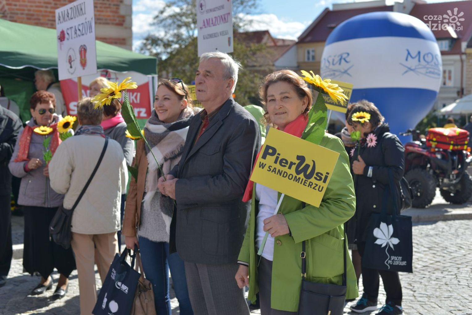 Na sandomierskim rynku, w minioną sobotę zgromadzili się mieszkańcy, władze miasta, przedstawiciele instytucji kulturalnych i sportowych. Przybyły także delegacje ze szkół. Wszystko po to, aby uświadomić kobiety, jak ważna jest profilaktyka i że rak to nie wyrok. Marsz rozpoczął się w samo południa, a poprowadziła go Sandomierska Orkiestra Dęta. Uczestnicy trzymali w rękach słoneczniki oraz transparenty z hasłami, jakich używają w edukacji z nowotworem piersi.