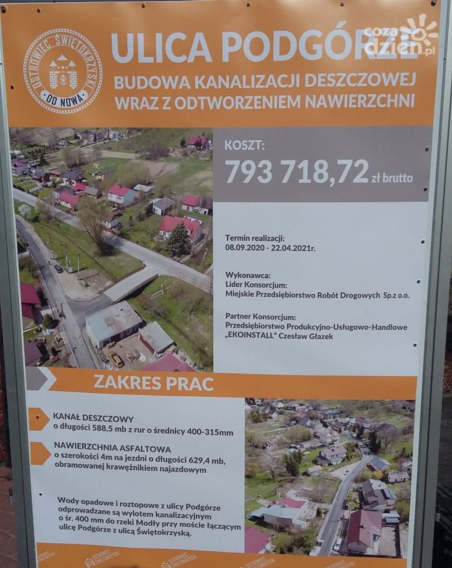 Nawierzchnię asfaltową o szerokości 4 metrów i długości blisko 630 metrów, obramowaną krawężnikiem najazdowym wykonało Miejskie Przedsiębiorstwo Robót Drogowych w Ostrowcu Świętokrzyskim, natomiast kompleksowy system kanalizacji deszczowej Przedsiębiorstwo Produkcyjno - Usługowo - Handlowe "EKOINSTALL" Czesław Głazek. Koszt inwestycji opiewa na kwotę 793 718, 72 zł brutto.