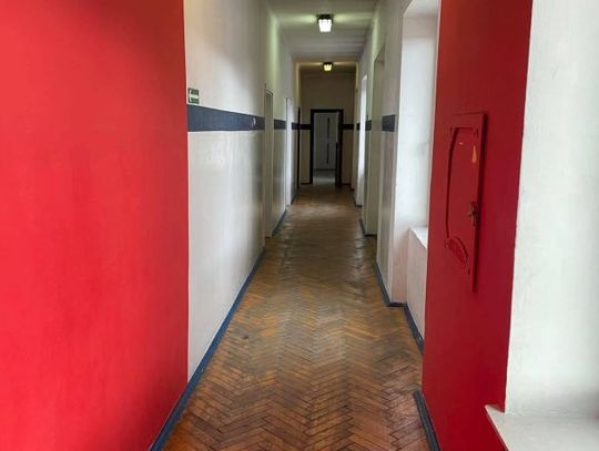 na parterze: hol i korytarz odmieni wymiana podłogi, renowacja ścian, montaż oświetlenia i podświetlenia galerii, wydzielenie klatki schodowej,