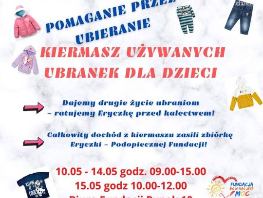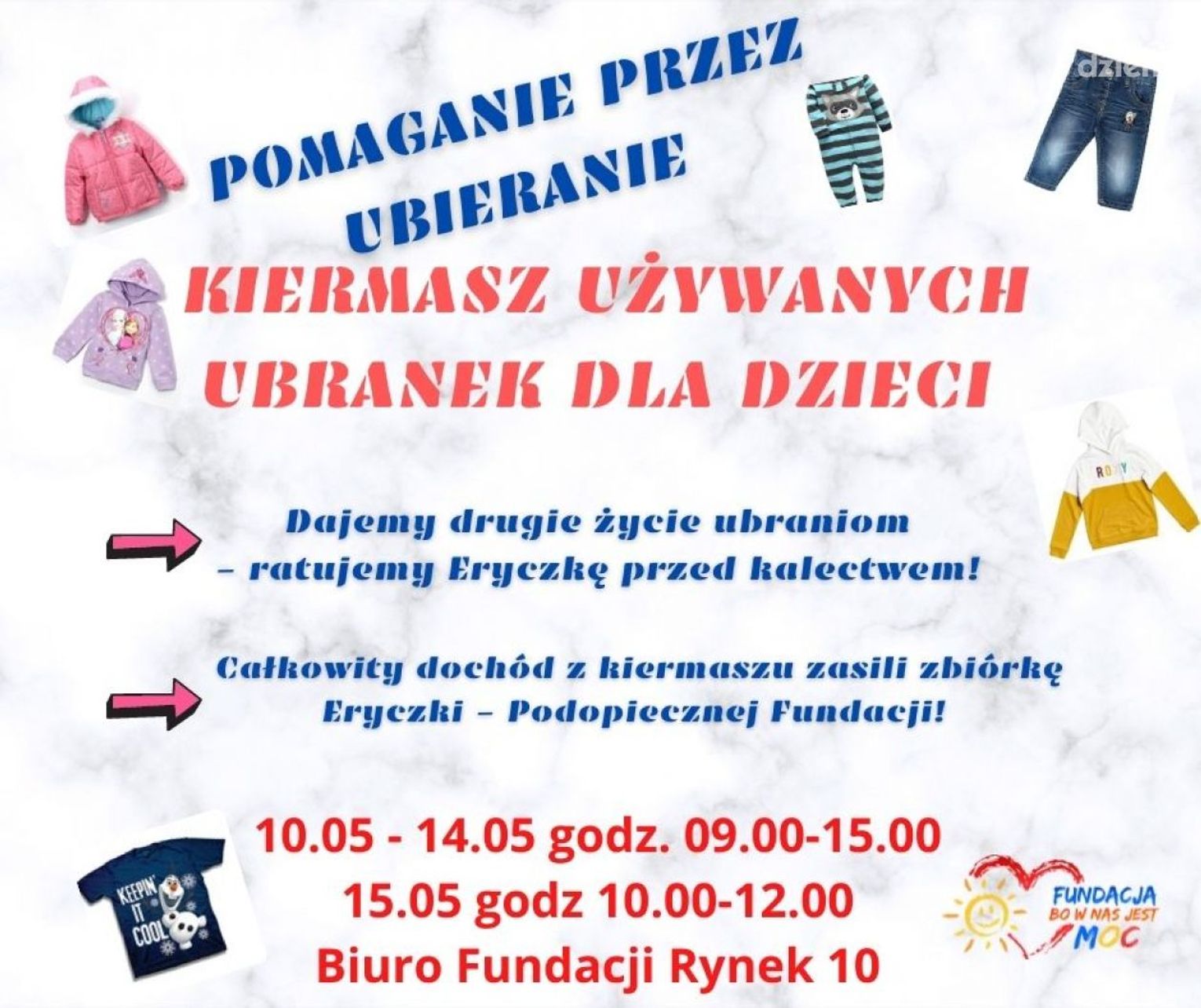- Posiadamy mnóstwo ubranek niemowlęcych, dla młodszych i starszych dzieci oraz ubrań dla dorosłych. Dostępne do nabycia będą buty dziecięce, młodzieżowe i damskie oraz torebki przekazane przez Darczyńców. Będzie można za kilka złotych nabyć ubranka dla swojego dziecka a przy okazji pomóc Eryczce w walce o sprawność. Pieniążki będzie można wpłacać do skarbony w ramach prowadzonej dla Eryczki zbiórki publicznej - informuje Justyna Marynowska- prezes Fundacji "Bo w nas jest moc"