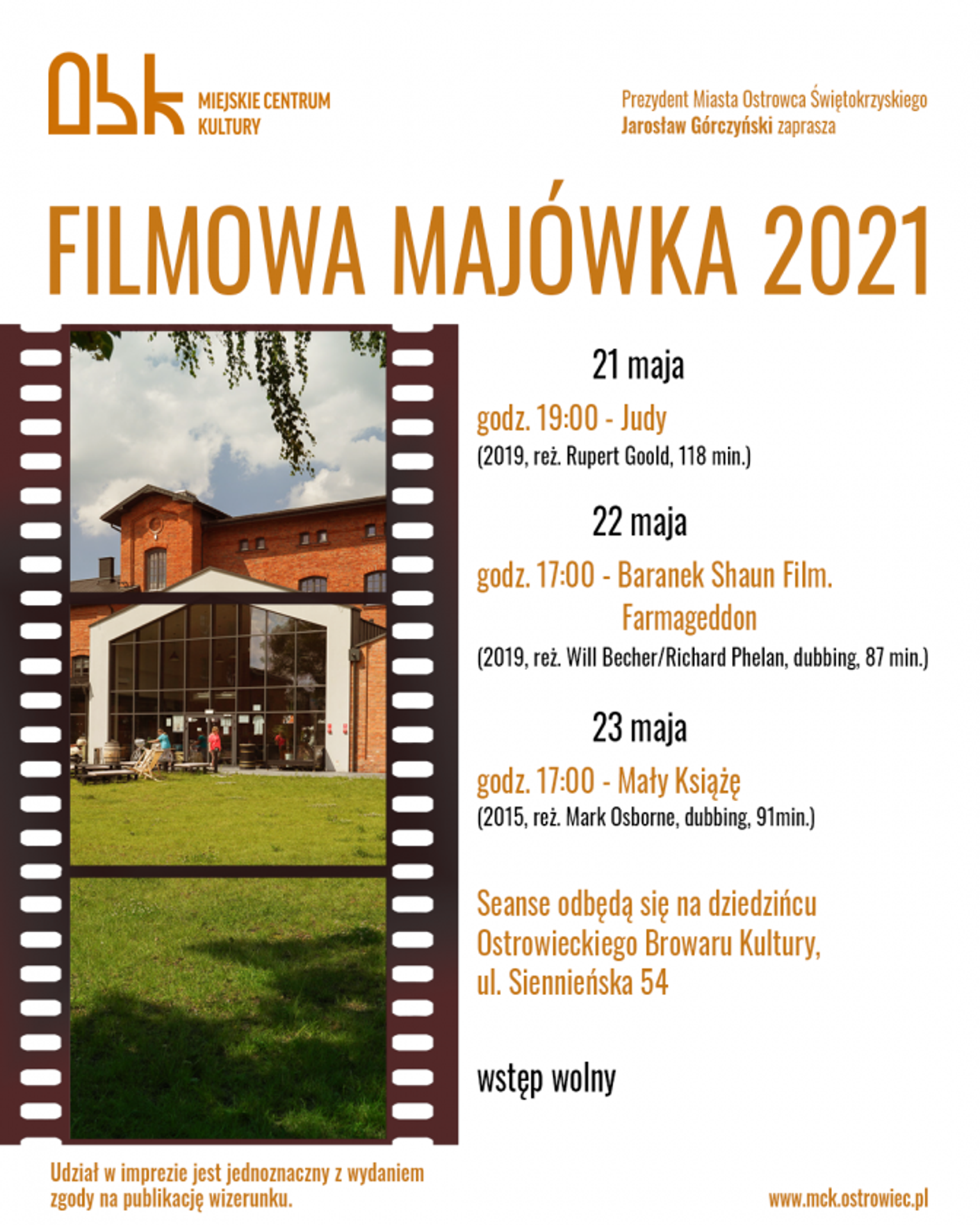 "Filmowa Majówka 2021" rozpocznie się w piątek 21 maja o godzinie 19:00 seansem filmu "Judy" na dziedzińcu Ostrowieckiego Browaru Kultury.