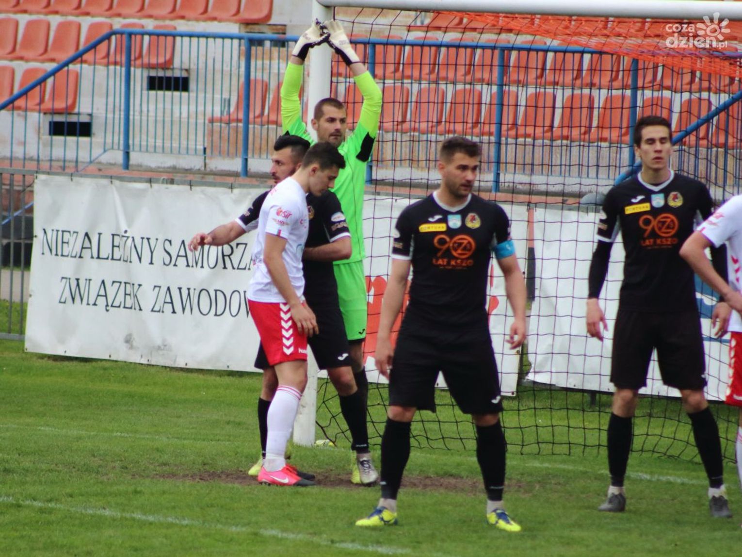Grzegorz Fularski 30 min 1:1 Damian Mężyk 45 min KSZO: Lipiec – Głaz, Majewski, Mężyk, Ziółkowski (72 min Nowak), Pawlik (72 min Zalewski), Partyka (86 min Szymański), Bayramov, Zaklika (57 min Paluch), Smuczyński (57 min P. Kaczmarek), Stanisławski.