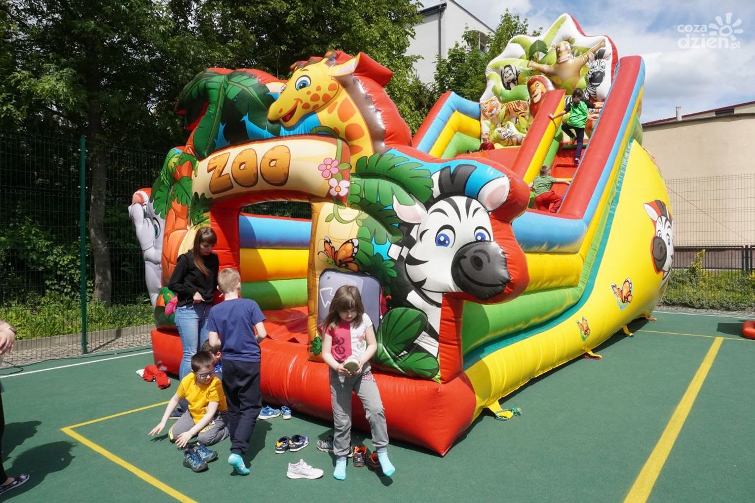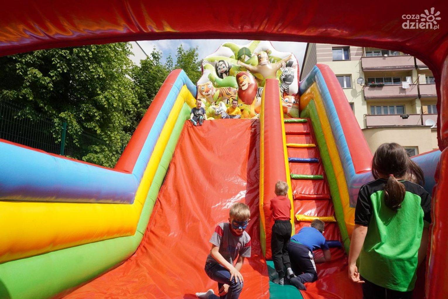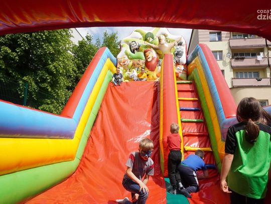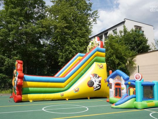 Dmuchane zjeżdżalnie cieszyły się ogromnym zainteresowaniem. Podobnie jak inne atrakcje, których dziś na placu szkoły było bez liku.