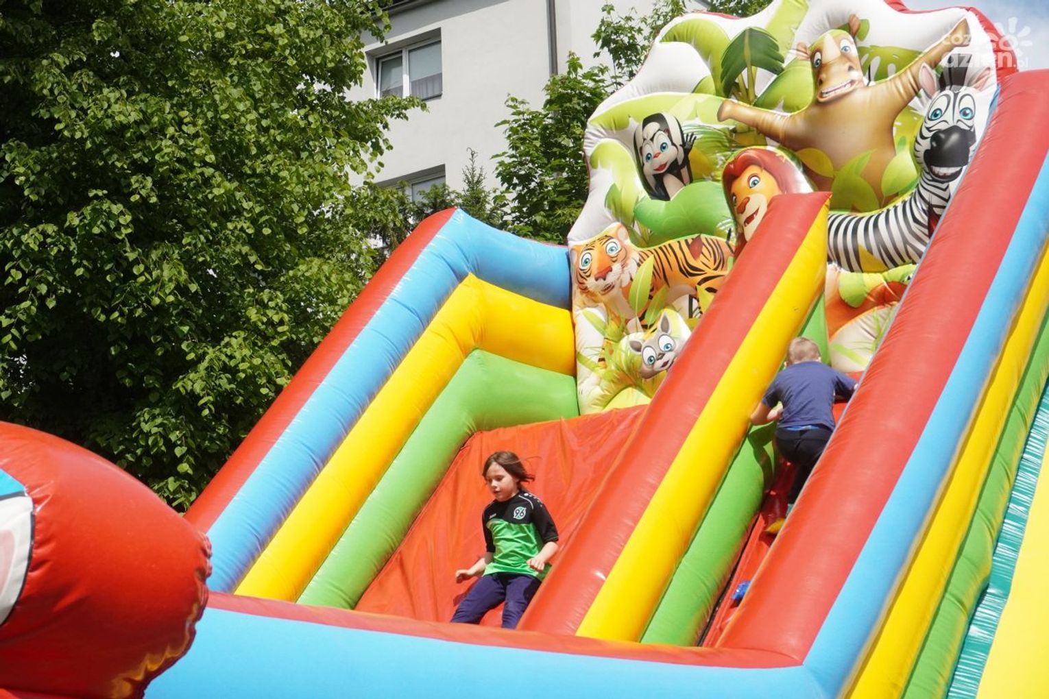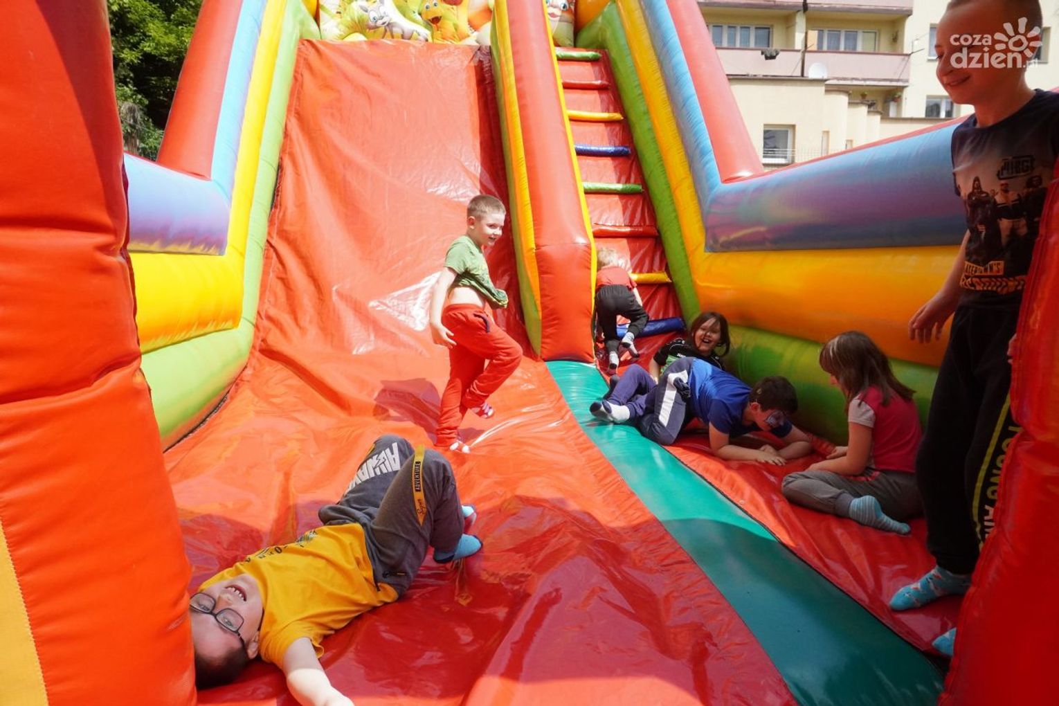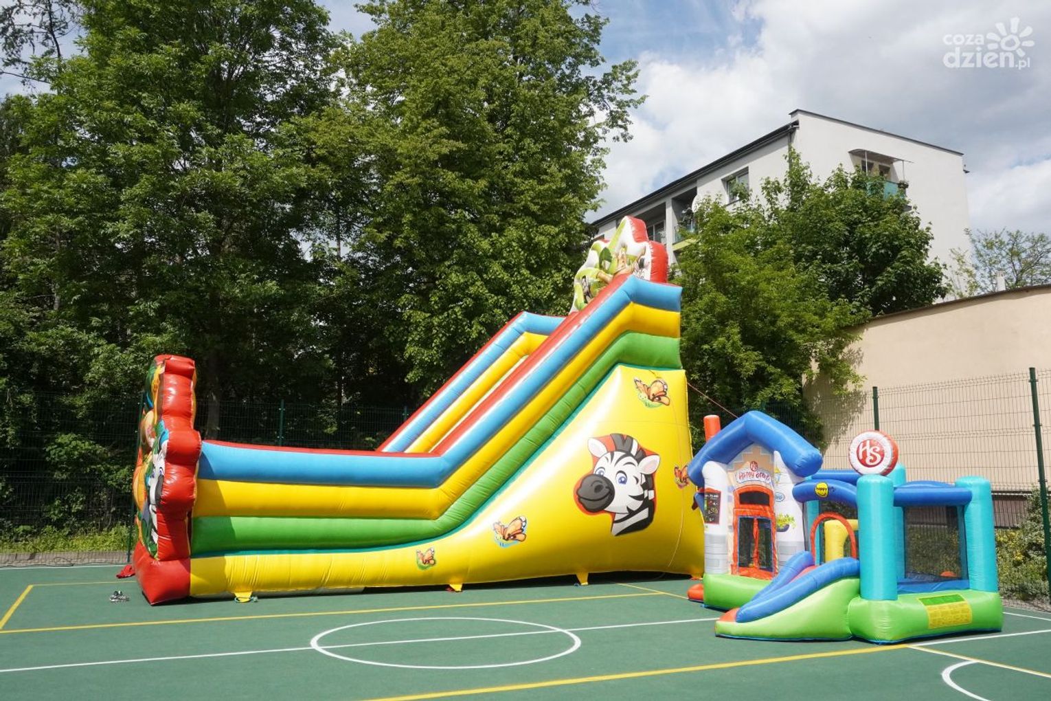Dmuchane zjeżdżalnie cieszyły się ogromnym zainteresowaniem. Podobnie jak inne atrakcje, których dziś na placu szkoły było bez liku.