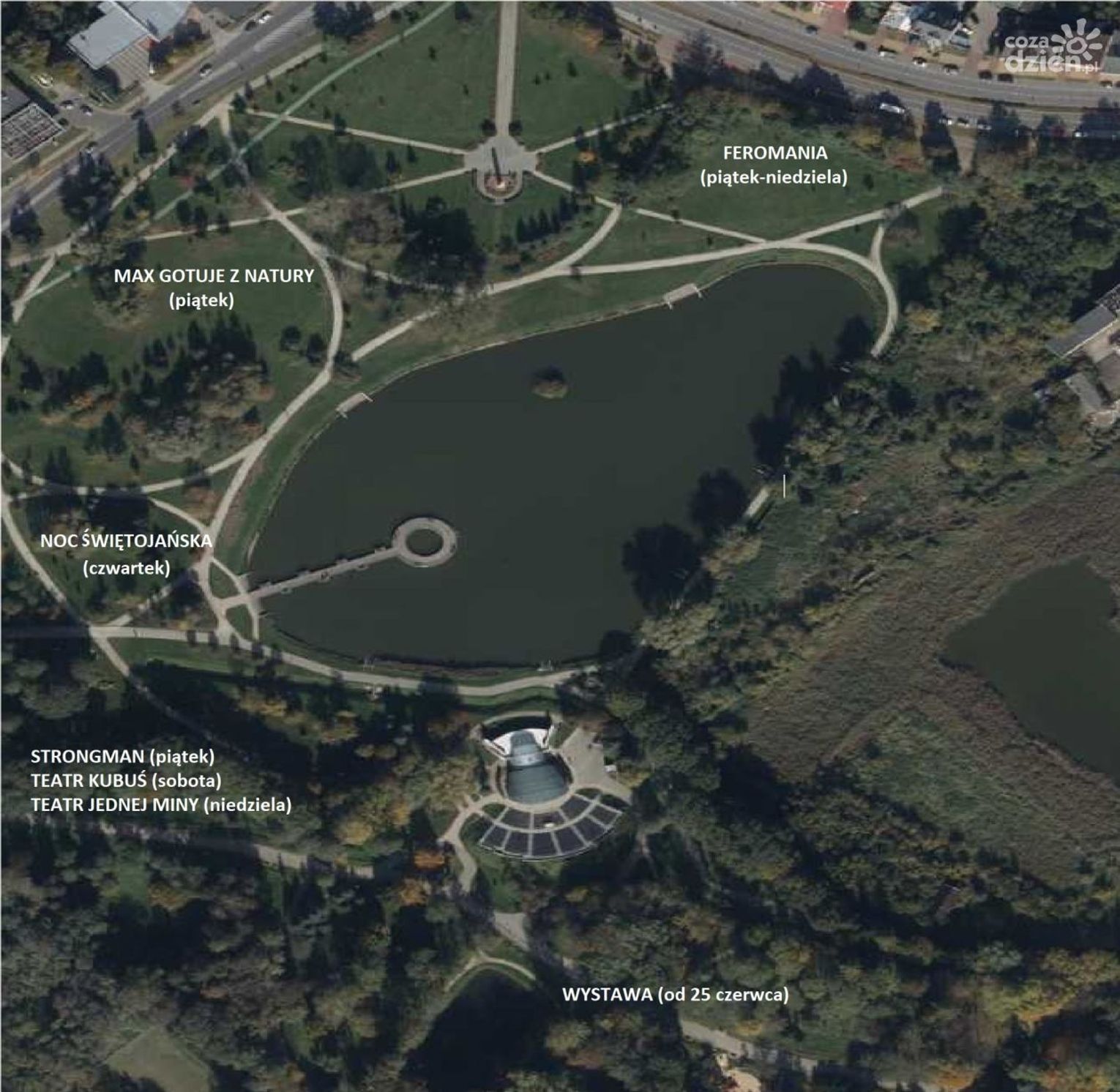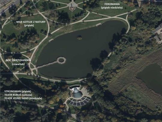 W tych przestrzeniach parku miejskiego będą się odbywać też oryginalne warsztaty kulinarne i rekonstrukcje z czasów rzymskich. Za to w sobotę i niedzielę na scenie amfiteatru będzie można podziwiać ostrowieckie talenty wokalne a gwiazdami będzie Michał Szczygieł oraz raper TEDE. Szczegóły na plakatach.