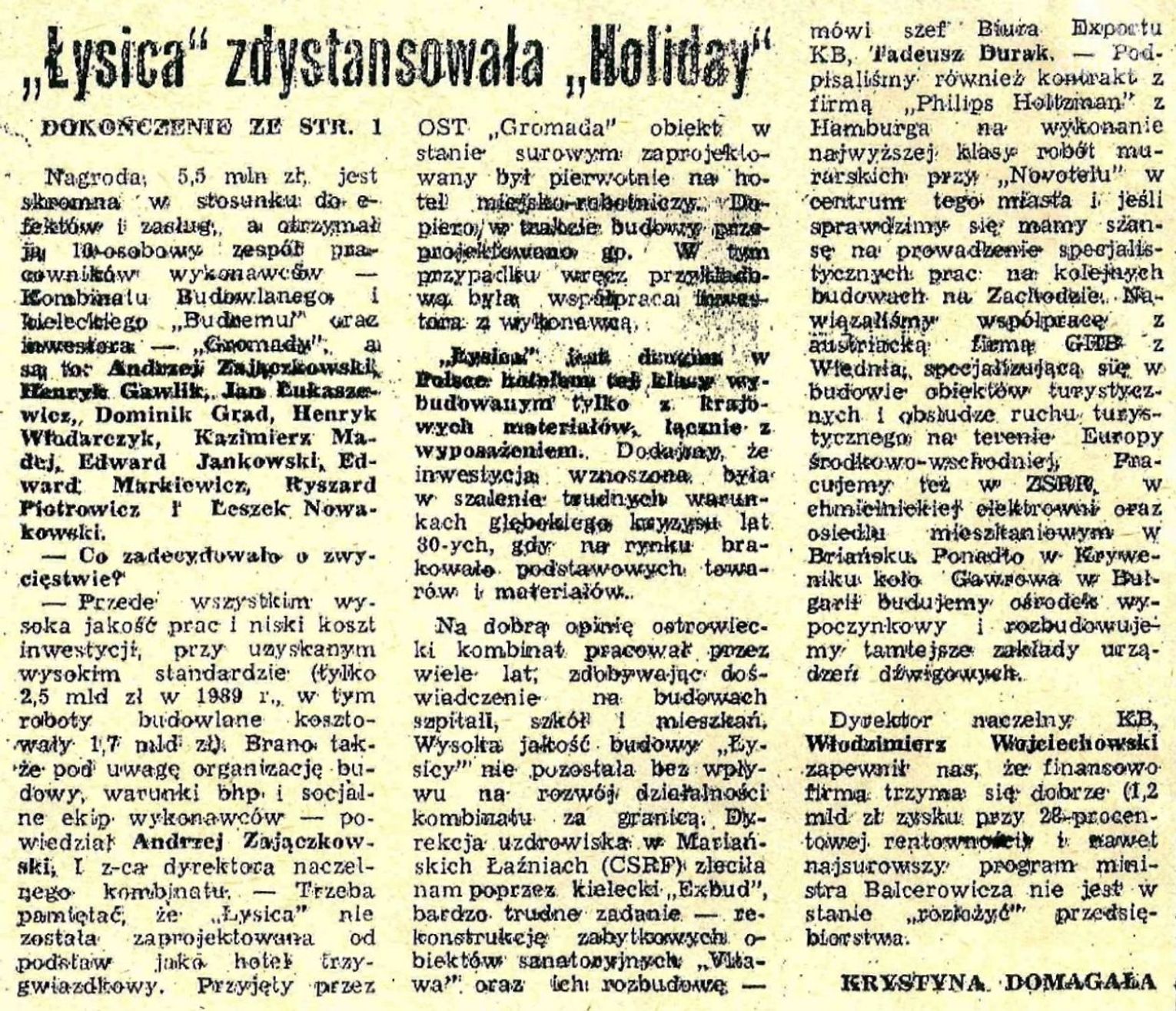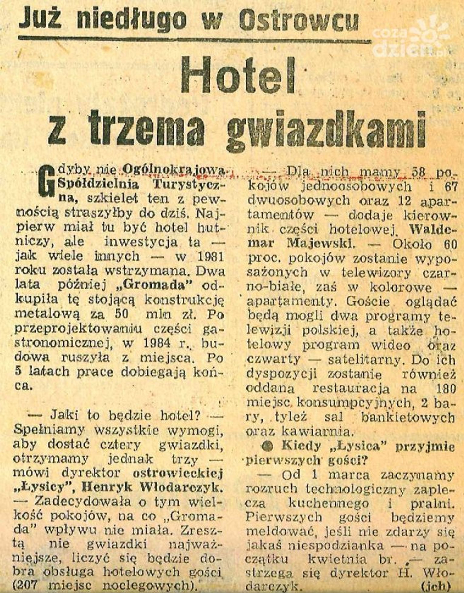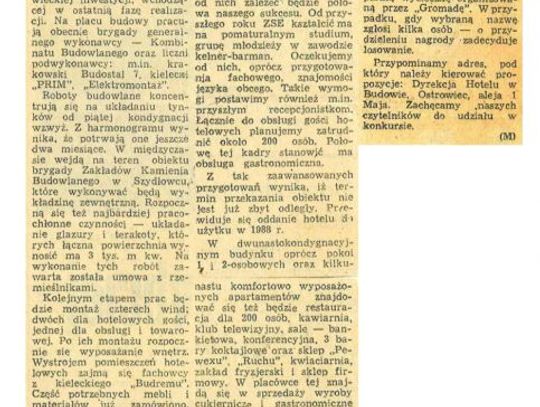Szkielet hotelu straszył swym wyglądem aż do 1983 r. Właśnie wtedy włodarze miasta wraz z Zarządem OST „Gromada” postanowili odpłatnie przejąć budowę hotelu. 29 marca 1983 r. „Gromada” zleciła Rejonowej Dyrekcji Rozbudowy Miast i Osiedli Miejskich pełnienie obowiązków inwestora zastępczego. 15 czerwca 1984 r. zawarła umowę z Kombinatem Budowlanym w Ostrowcu, jako generalnym wykonawcą hotelu. Prace budowlane ruszyły we wrześniu tego samego roku.