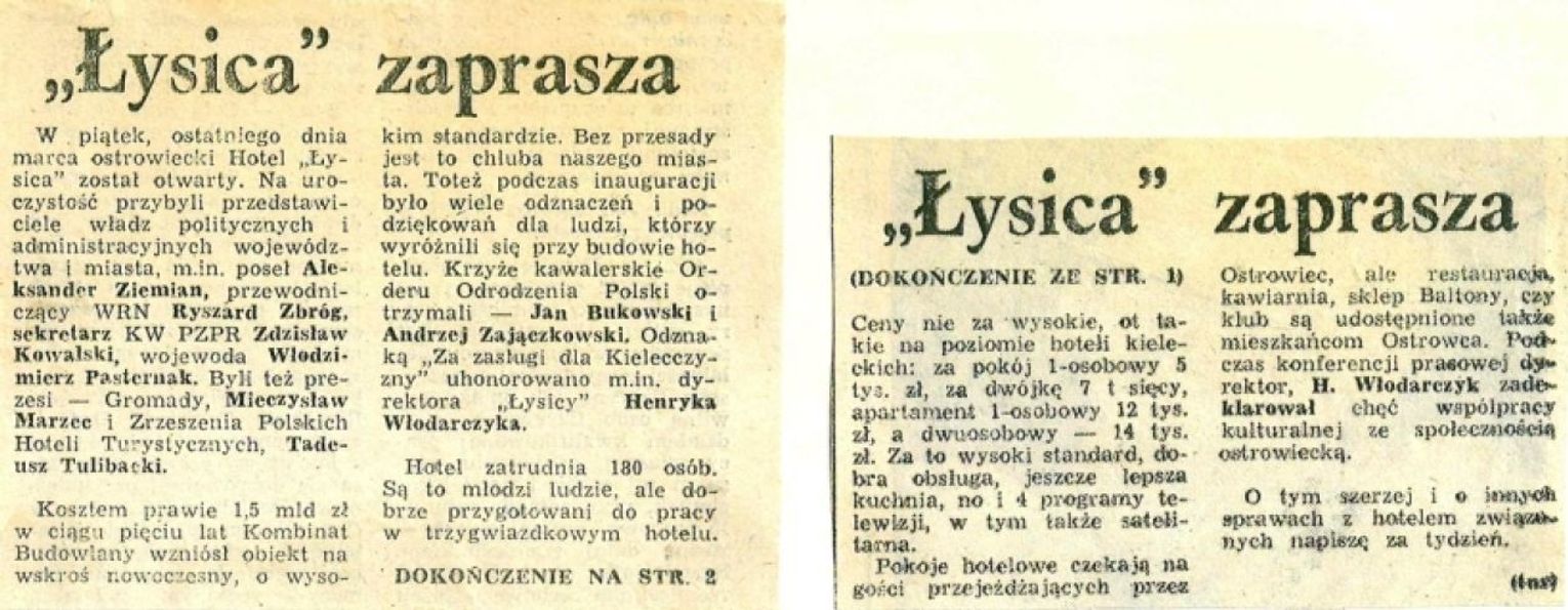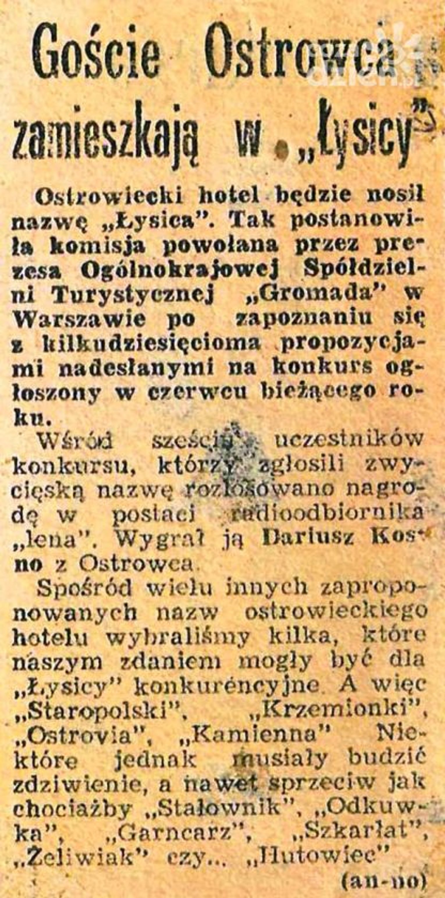 W 1986 r., za pośrednictwem lokalnej prasy ogłoszono konkurs na nazwę hotelu. Było wiele propozycji. Decyzja komisji powołanej przez zarząd postawiła na nazwę związana z regionem - "Łysica".