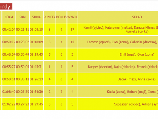 Tak jak w latach ubiegłym celem prowadzenie klasyfikacji rodzinnej jest promocja biegania całymi rodzinami. Drużyna rodzinna musi składać się z co najmniej dwóch osób spokrewnionych ze sobą w linii prostej: - dziecko + rodzic(e) + dziadek, - dzieci + rodzic(e) + babcia, - wnuczek + dziadek, wnuczek + babcia, - rodzeństwo, - małżeństwo. Warunkiem koniecznym do sklasyfikowania teamu w danej rundzie cyklu jest zaliczenie biegu na dystansie 10km oraz biegu lub marszu na dystansie 5km przez minimum dwie różne osoby. O ostatecznej lokacie w klasyfikacji rodzinnej cyklu zdecyduje największa suma punktów zdobytych podczas czterech z sześciu rund (w przypadku zaliczenia więcej niż czterech rund brane będą pod uwagę tylko cztery najlepsze wyniki punktowe).