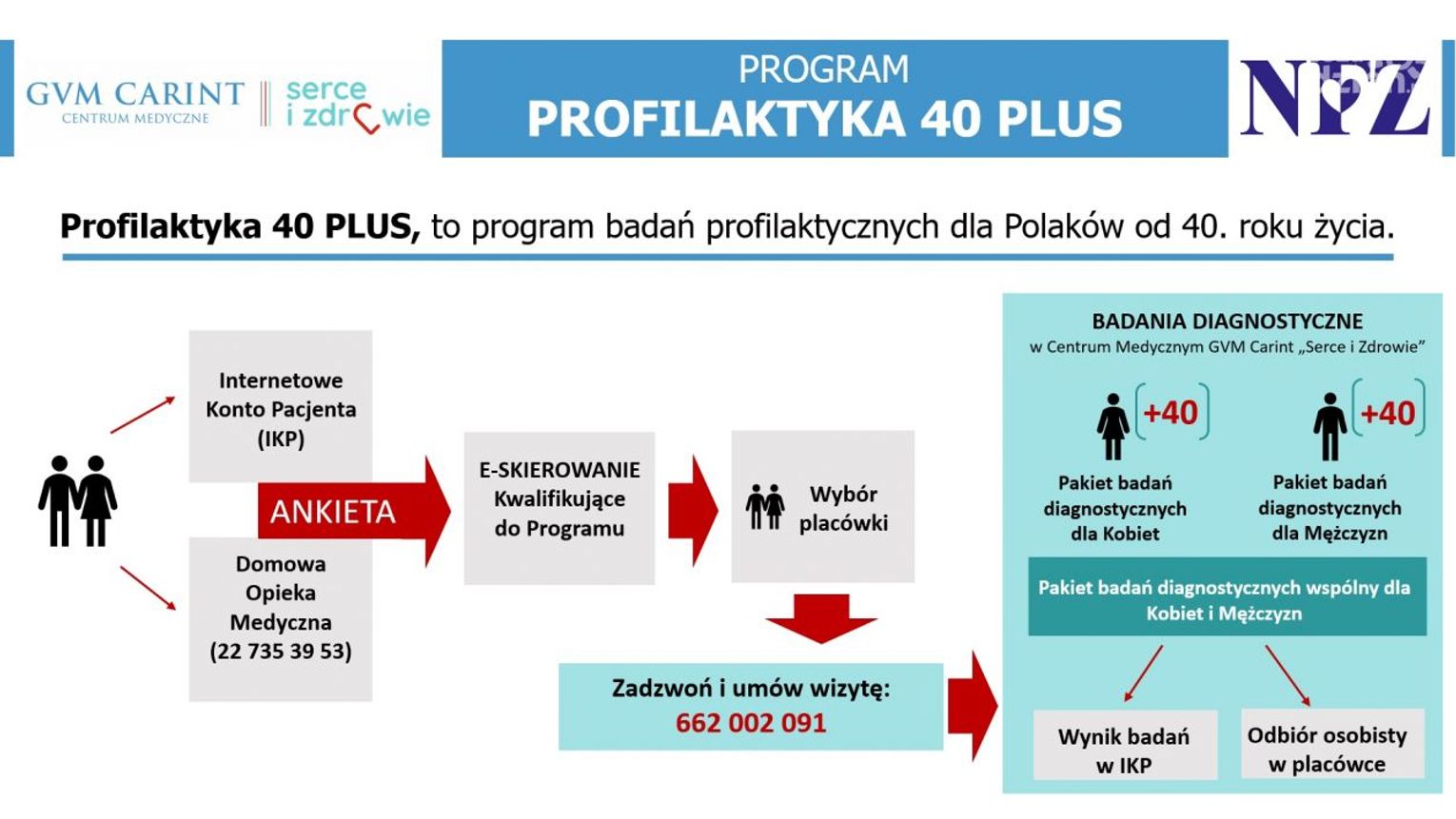 Aby wziąć udział w Programie należy wypełnić ankietę i uzyskać e-skierowanie na odpowiednie dla siebie badania. E-skierowanie na badania jest generowane w ciągu 2 dni roboczych od wypełnienia ankiety. Po jego otrzymaniu należy skontaktować się z Rejestracją Centrum Medycznego GVM Carint w Ostrowcu (662 002 091). Świadczenia opieki zdrowotnej będą udzielane na podstawie e-skierowania wystawionego przez system.