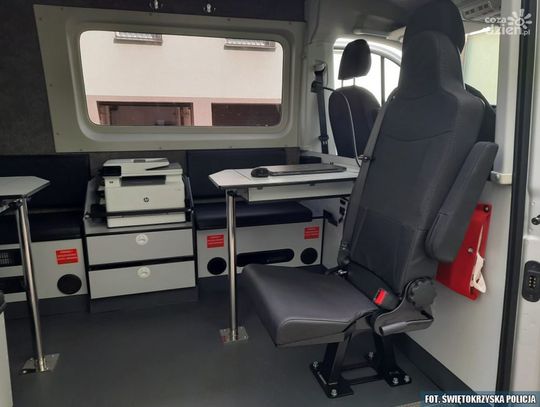 Posiada również dodatkowe oświetlenie zewnętrzne, znaki świetlne informujące o zagrożeniu lub przeszkodzie na drodze, 2- metrowy maszt oświetleniowy, znaki drogowe, agregat prądotwórczy, zestaw do "pierwszej pomocy" i wiele innych przedmiotów, które znacząco ułatwią pracę policjantom na miejscu zdarzenia, sprzęt informatyczny - laptop, drukarka, skaner czy ruter WIFI.